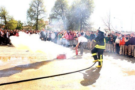 Tatbikatın ardından, itfaiye ve UMKE amirlerinin öğrencilere yangın gibi olaylarda nasıl davranılmaları gerektiğini ve yapmaları gerekenler hakkında bilgi verdi.