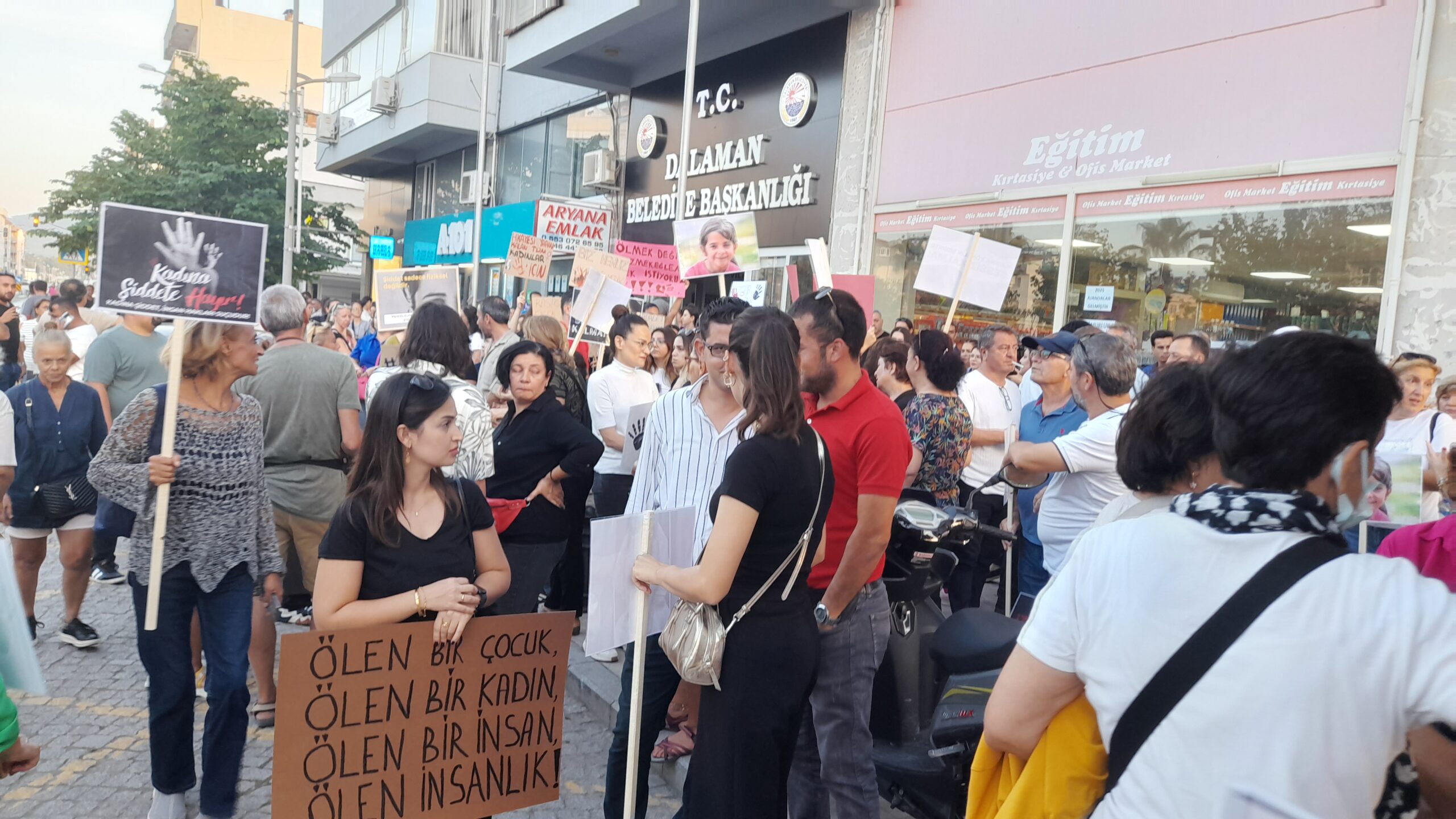 Dalaman Belediye Başkanı Sezer Durmuş ve belediye binası önünde toplanan taraftarlar, ellerinde dövizlerle kadın ve çocuk istismarına karşı sloganlar attı.
