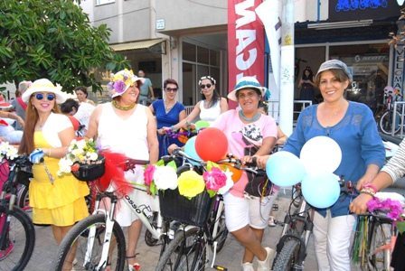 Fatma Jale Kutlumuş ve Fatma Bal önderliğinde organize edilen bisiklet turuna yaklaşık 55 kadın bisikletleriyle beraber süslenip etkinliğe renk kattı.