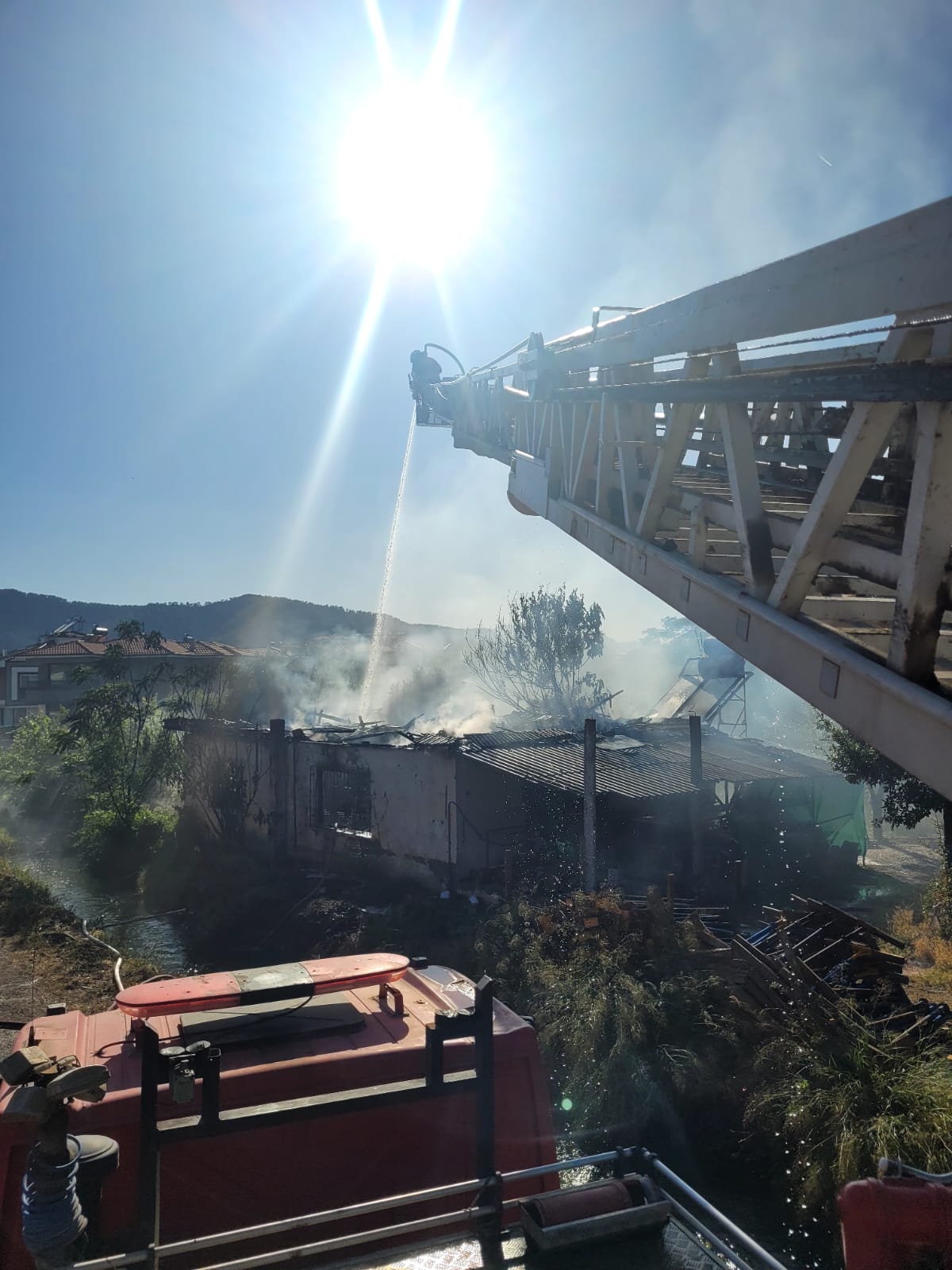 Ortaca ilçesinde, hediyelik eşya üretimi yapılan ev, yangın nedeniyle kullanılmaz hale geldi.
