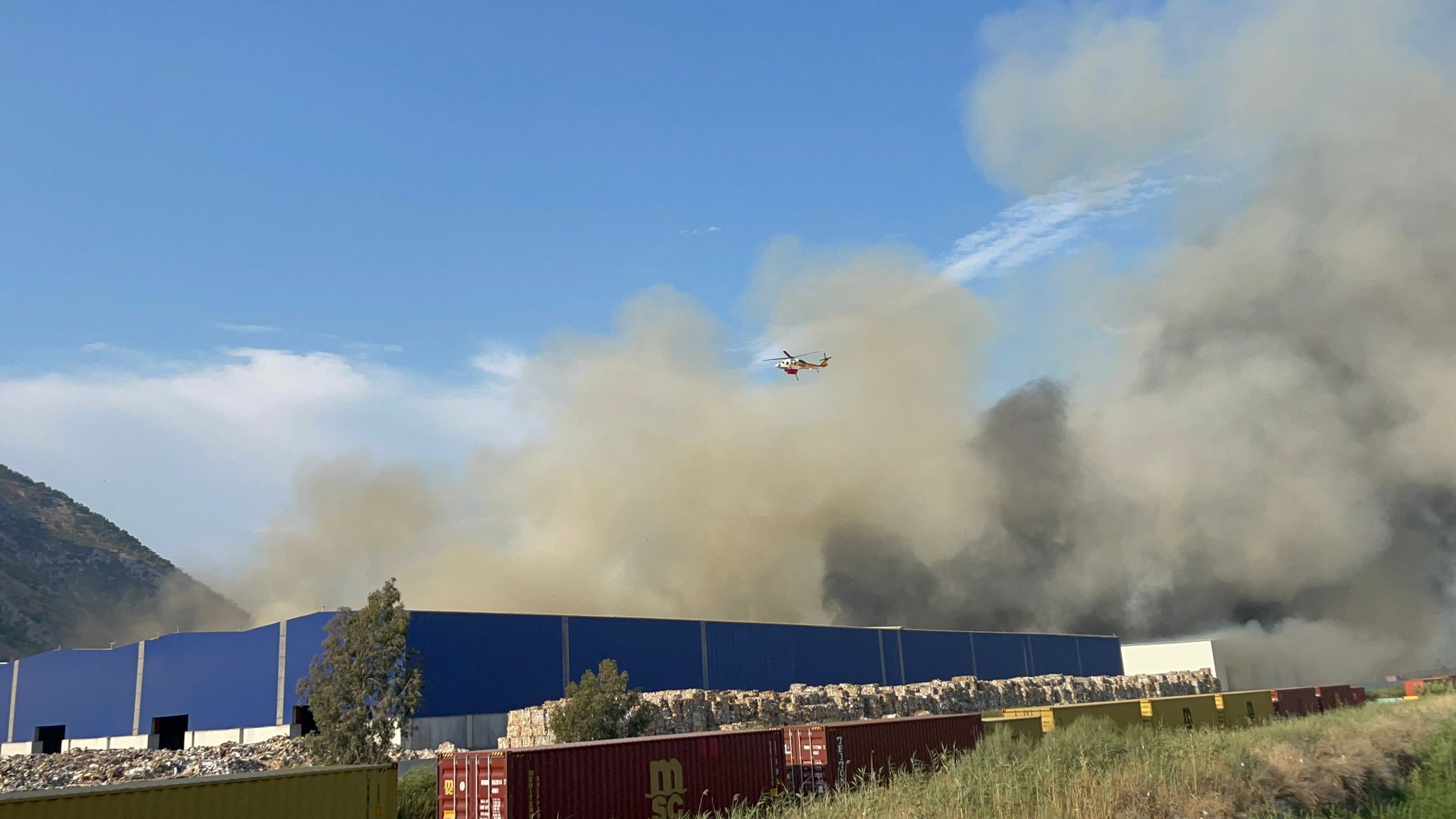 AYDIN (AA) – Aydın’ın Söke ilçesinde kağıt fabrikasında çıkan yangına müdahale ediliyor.
