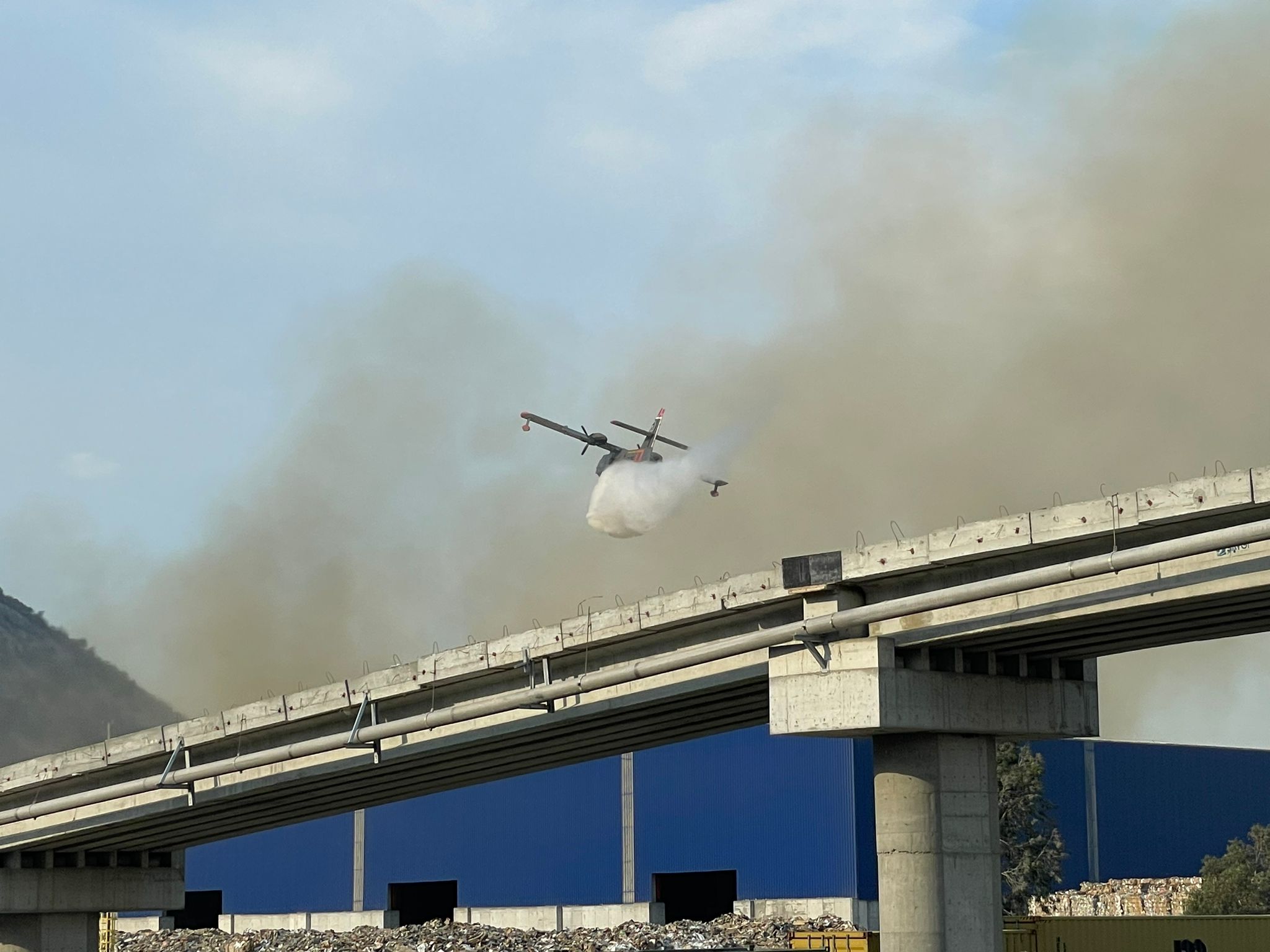 kağıt fabrikasında çıkan yangına müdahale ediliyor