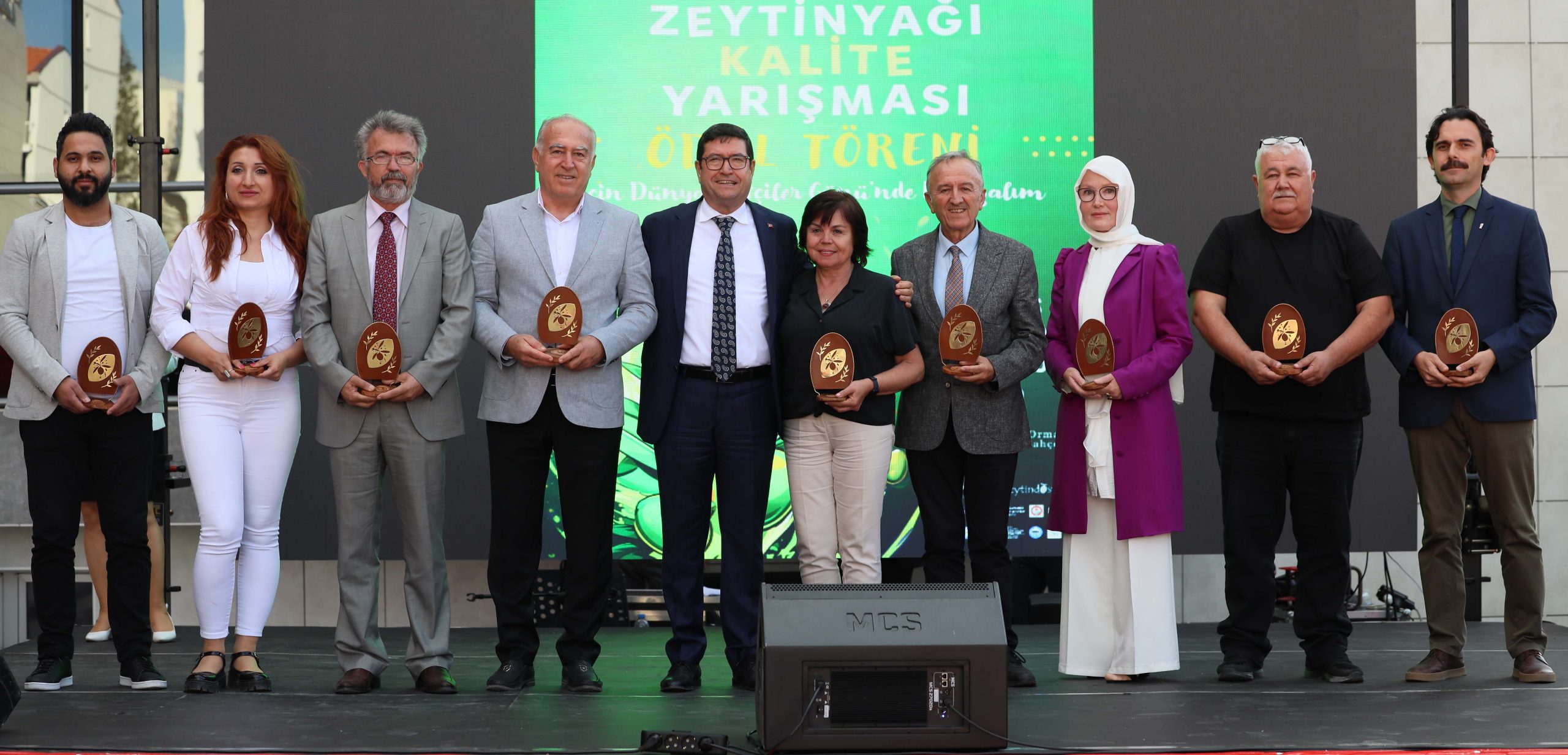 Konuşmalarının ardından “Zeytinyağı Kalite Yarışması”nda dereceye giren üreticilere ödülleri protokol üyeleri tarafından verildi.