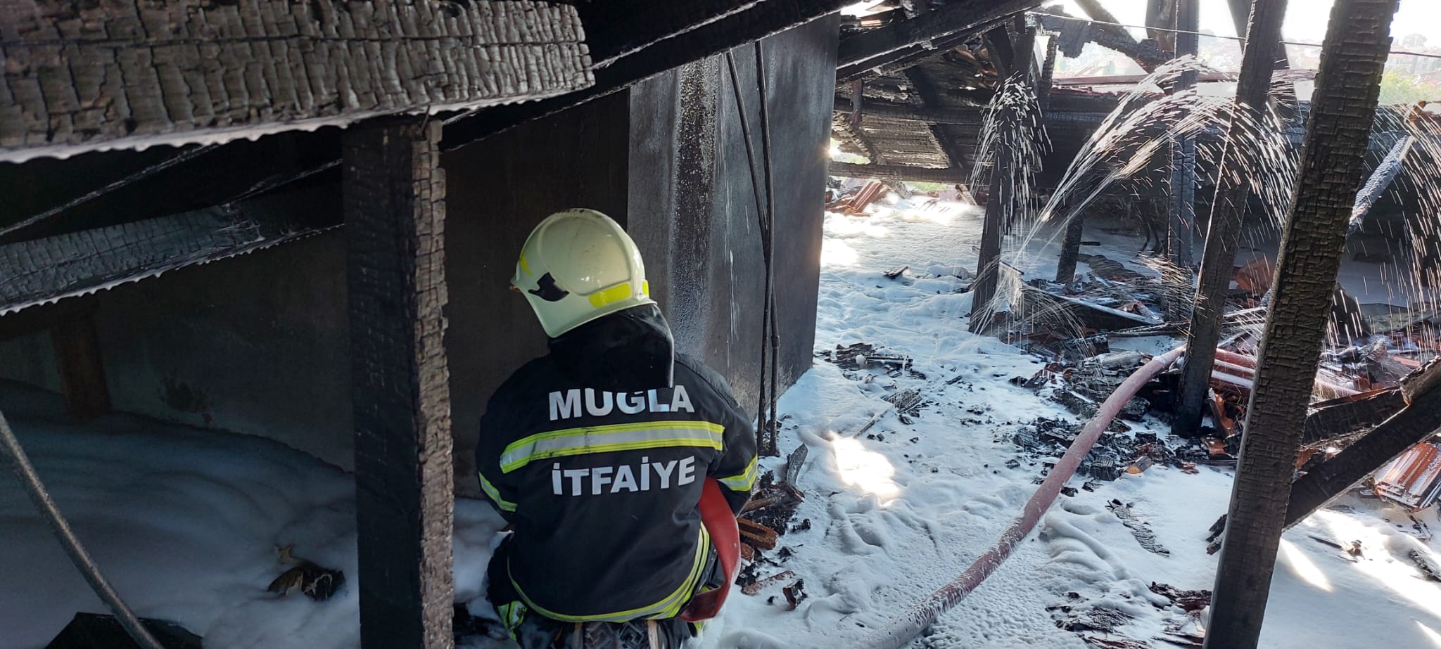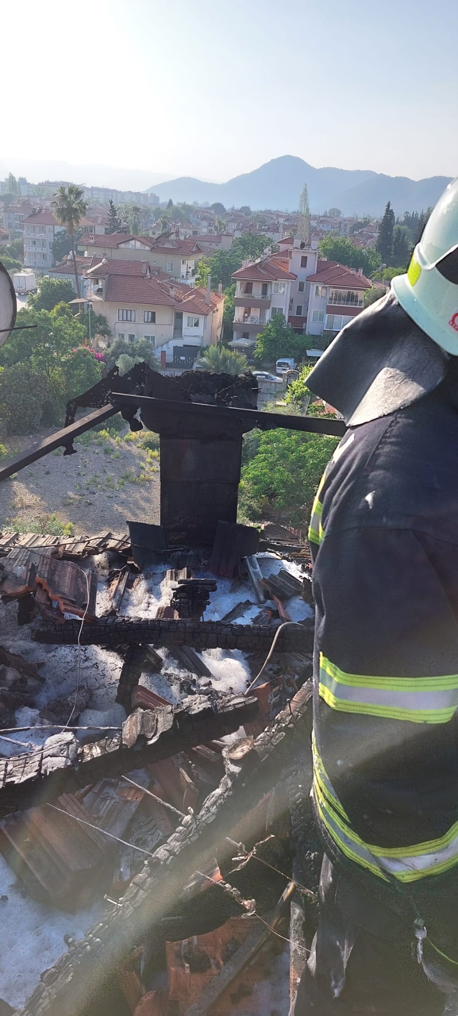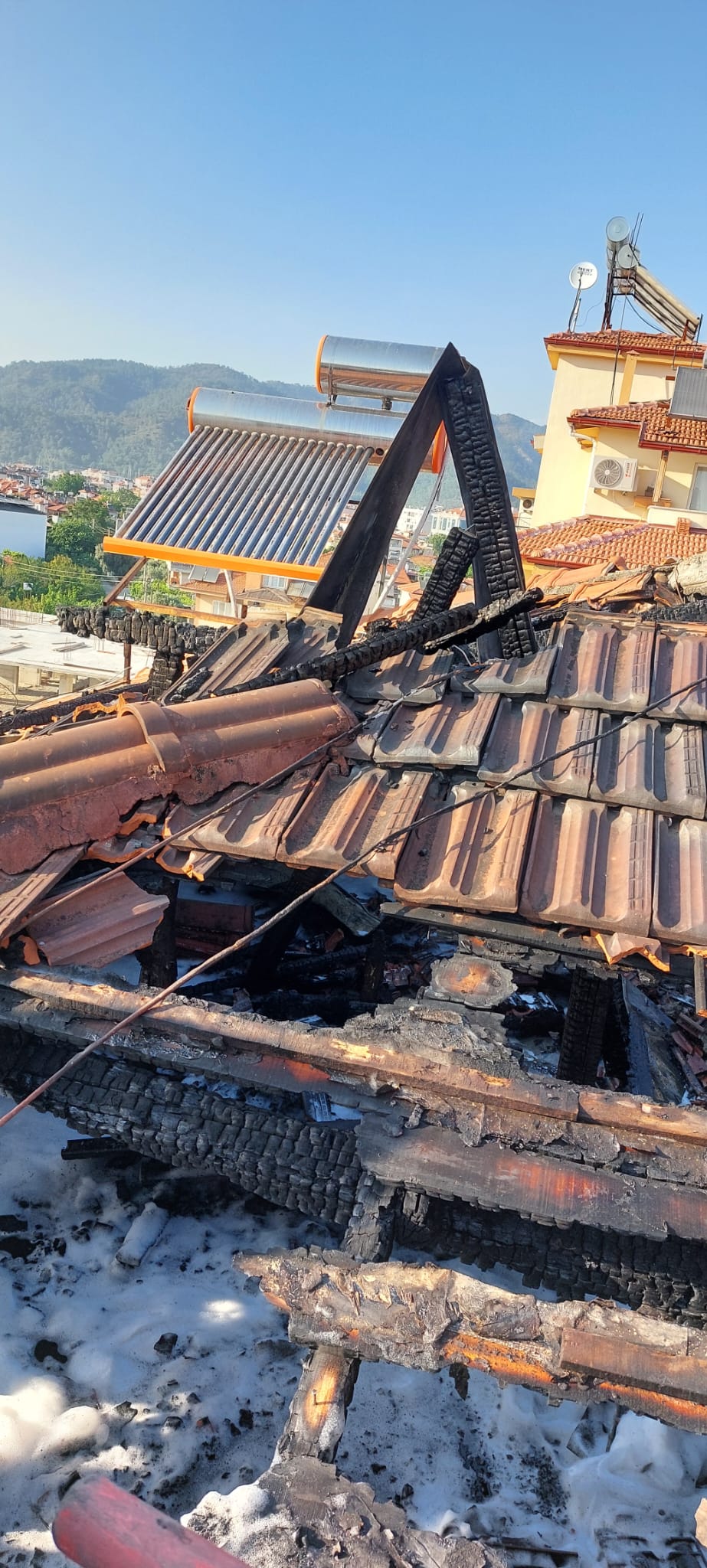 Muğla’nın Ortaca ilçesinde çıkan yangında çatı kullanılamaz hale geldi.